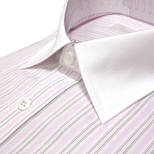 입체감이 느껴지는 온화한 느낌의 핑크 스트라이프 셔츠입니다.