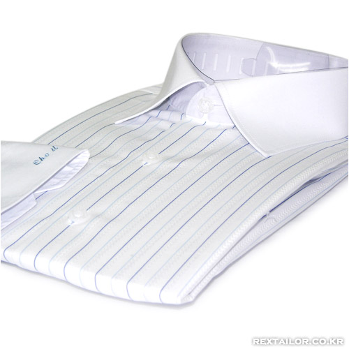 코디 : 화이트 바탕에 블루와 스카이 블루가 스트라이프로 처리된 원단으로 감색이나 블랙 슈트와 매치가 잘 되는 아이템입니다.
