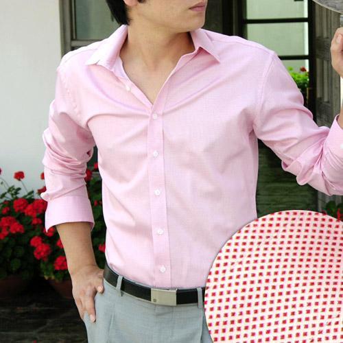 화이트바탕에 작은 레드 마름모 문양이 잘 조화된 핑크셔츠입니다.