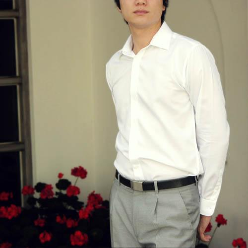 깨끗한 화이트컬러 솔리드(민무늬) 셔츠입니다.